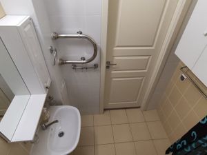 Жилая площадь 17,88 м2. Санузел 3,22 м2, теплый пол. Большая застекленная лоджия 4,1 м2 - можно организовать рабочее место или место для отдыха. Есть необходимая мебель, посуда и техника (большой холодильник, плита, духовой шкаф, встроенная микроволновая печь, стиральная машина, два больших шкафа для хранения и др.). Окна выходят во двор.
