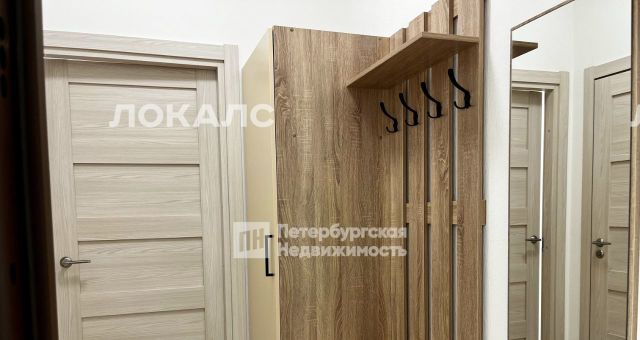 Квартира оснащена современной мебелью и техникой. Кухонный гарнитур с варочной поверхностью и духовым шкафом, вытяжка, микроволновая печь, чайник, блендер, обеденный стол, два стула, холодильник, шкаф, кровать, телевизор, напольный стеллаж, журнальный столик, гладильная доска и утюг, сушилка, гардеробная, стиральная машина, посуда и столовые приборы.