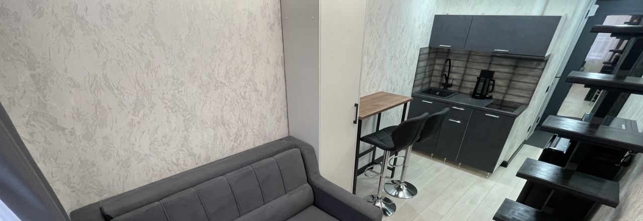 Студия укомплектована всем необходимым для проживания: телевизор, смарт тв, плита, посуда, микроволновка, холодильник, фильтр для воды, на окнах москитная сетка, 2 стиральные машинки в общей зоне.