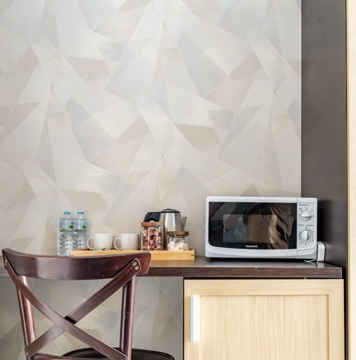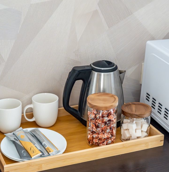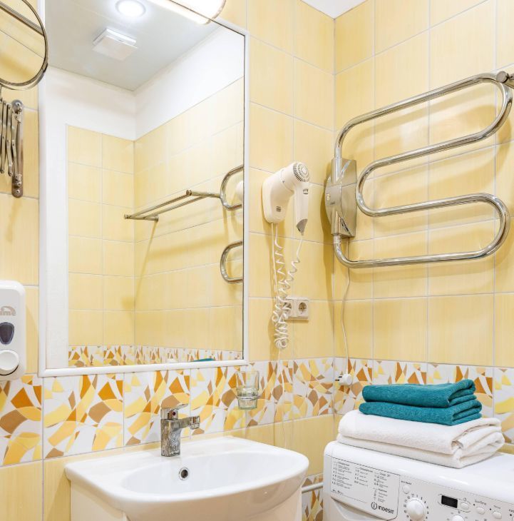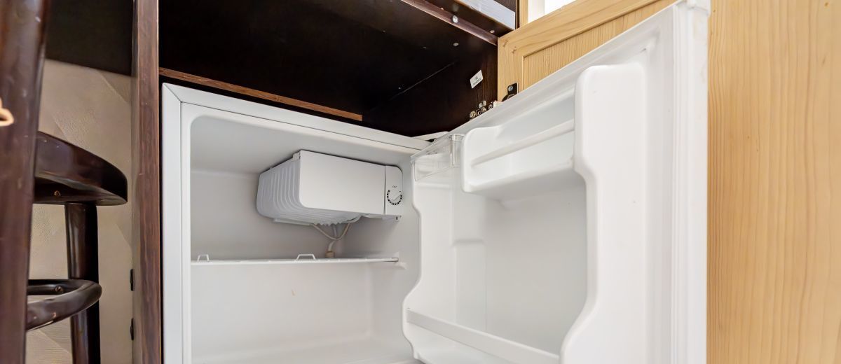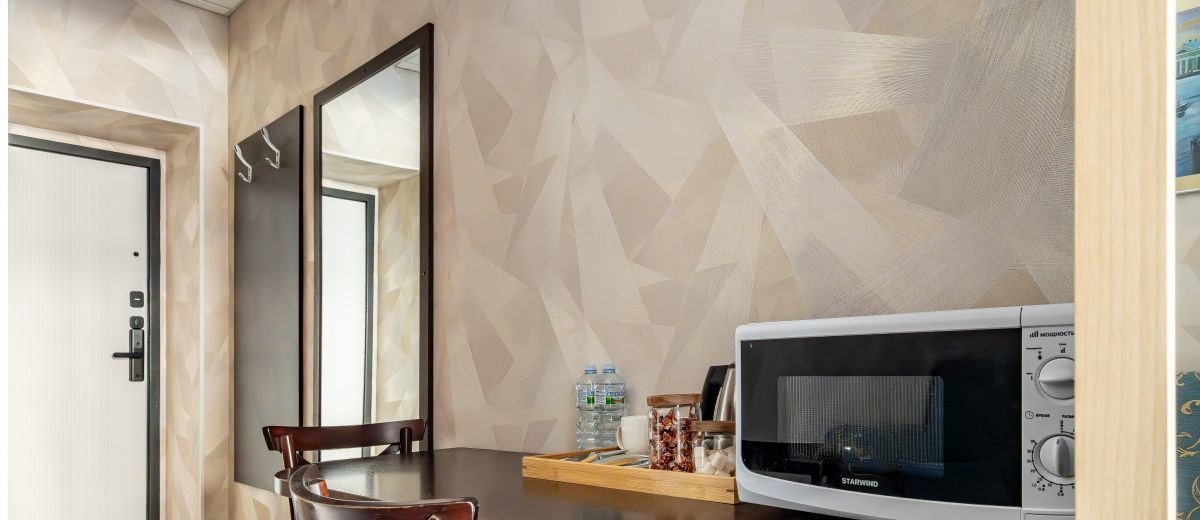 Техника: стиральная машина в студии, микроволновая печь, мини холодильник, телевизор, кондиционер, индукционная настольная плитка.
