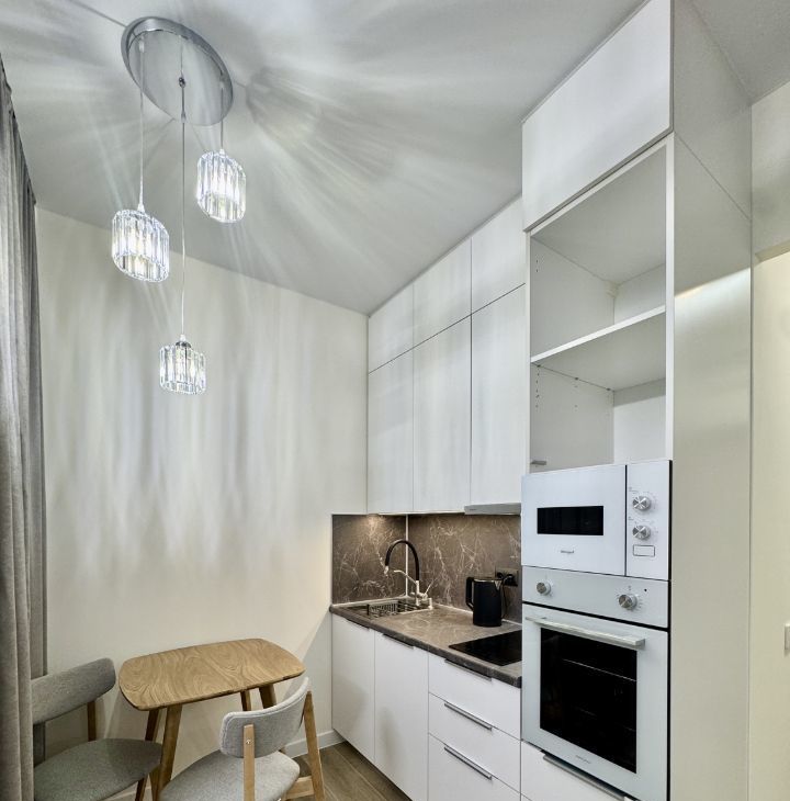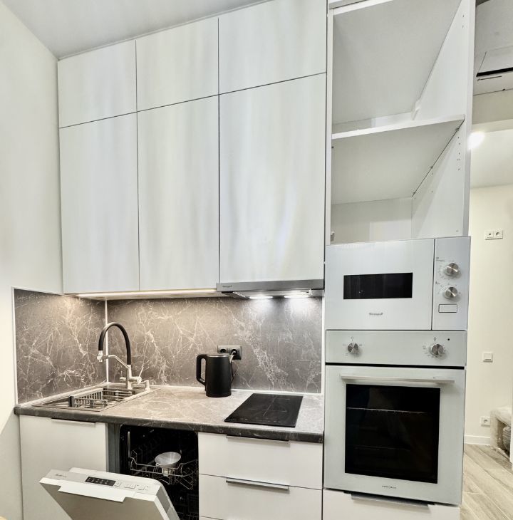 Дом с закрытой территорией. Квартира после ремонта, все новое! Продумана до мелочей. Кухня с необходимой техникой: посудомоечная машина, духовой шкаф, варочная поверхность, вытяжка, электрический чайник, микроволновая печь.