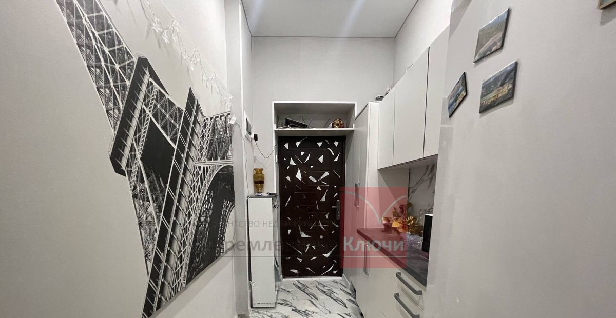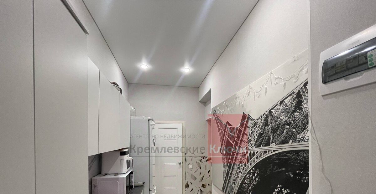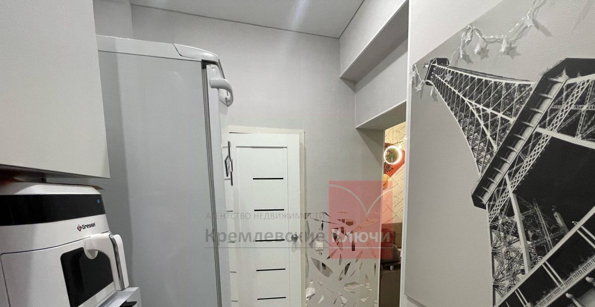 К комнате присоединена часть общего коридора, площадью 11 кв.м., что, вместе с основной комнатой 21,0 кв.м., образует полноценное приватное пространство с надежной входной дверью. Присоединение согласовано со всеми собственниками квартиры. Также организована функциональная зона с собственными совмещенным санузлом и современной кухонной линией.