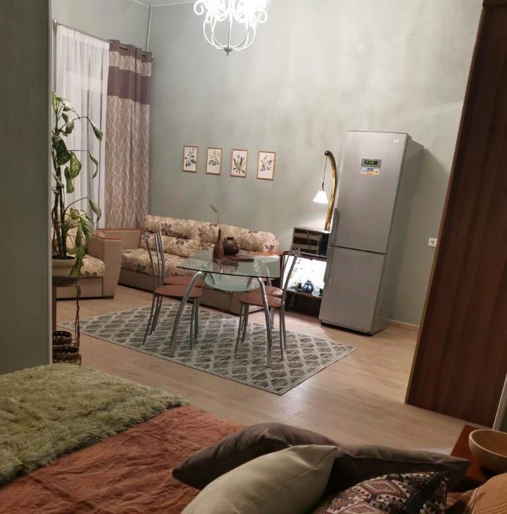 В квартире сделан дизайнерский ремонт, что придаёт ей уникальный стиль и уют. Вся необходимая мебель для комфортного проживания уже есть. Из техники — кондиционер, холодильник, телевизор и стиральная машина, поэтому можно сразу заехать и жить. Совмещенный санузел оборудован современной .окна квартиры выходят на улицу.На территории дома есть наземная парковка, что удобно для владельцев автомобилей. Здание поддерживается в хорошем состоянии.