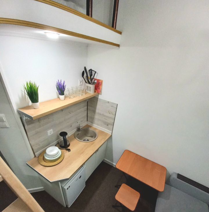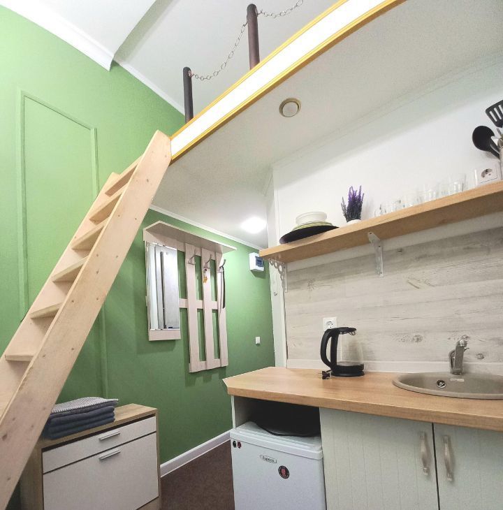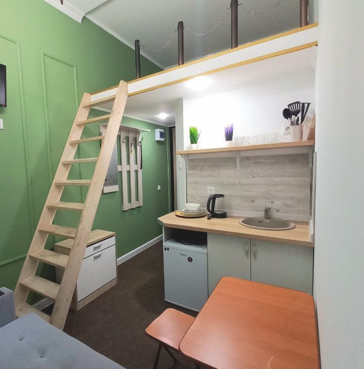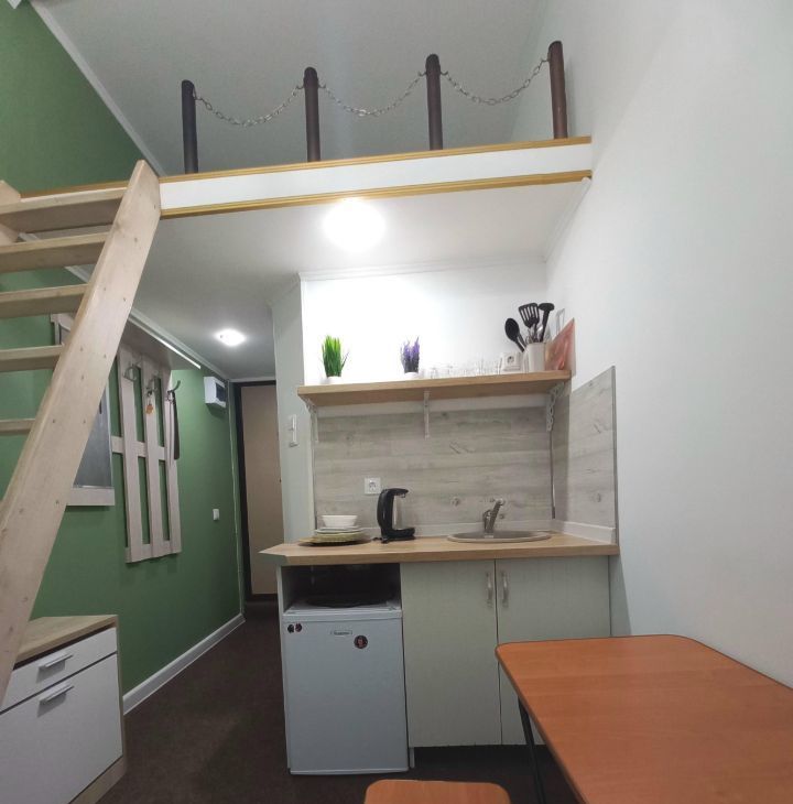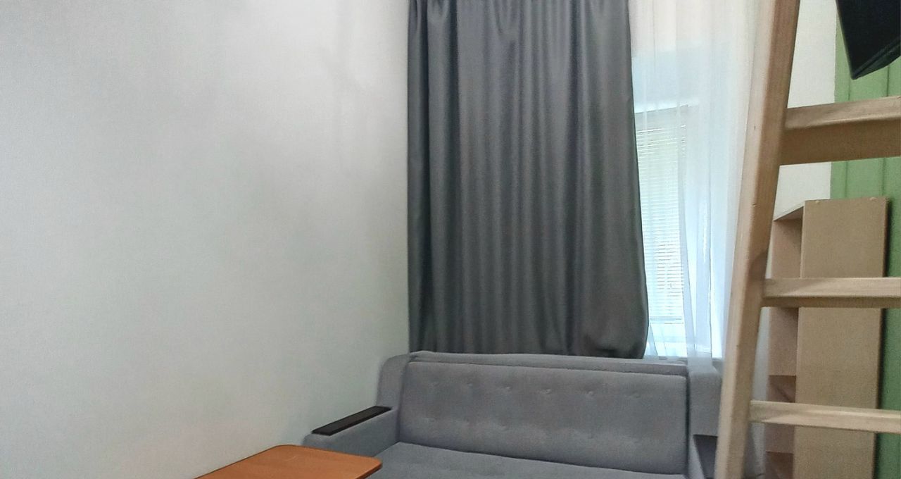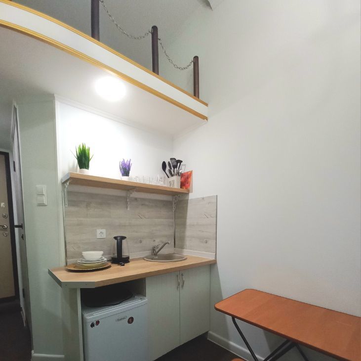 Сдаётсяна 1-2 месяца уютная двухуровневая студия с современным ремонтом на первом этаже кирпичного дома. Кухонная зона оборудована необходимой техникой: холодильник, микроволновая печь, посуда, столовые приборы,эл.чайник. В наличии рейл для одежды и складной диван.