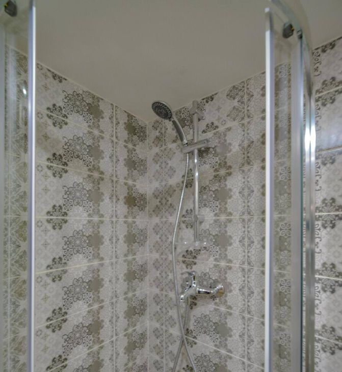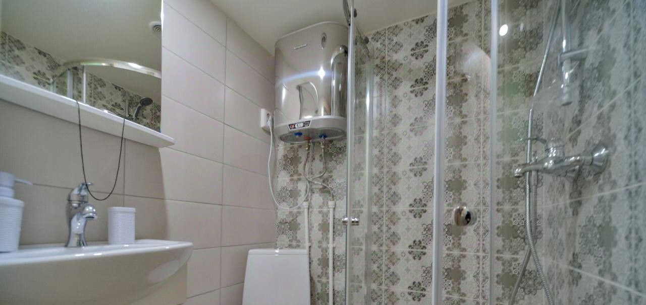 На верхнем ярусе двуспальный матрас 160200,настенные светильники. Санузел совмещённый, оснащён душевой кабиной,водонагревателем и санузлом. Из окон открывается вид на тихий двор. В квартире установлен телевизор,есть wi-fi.