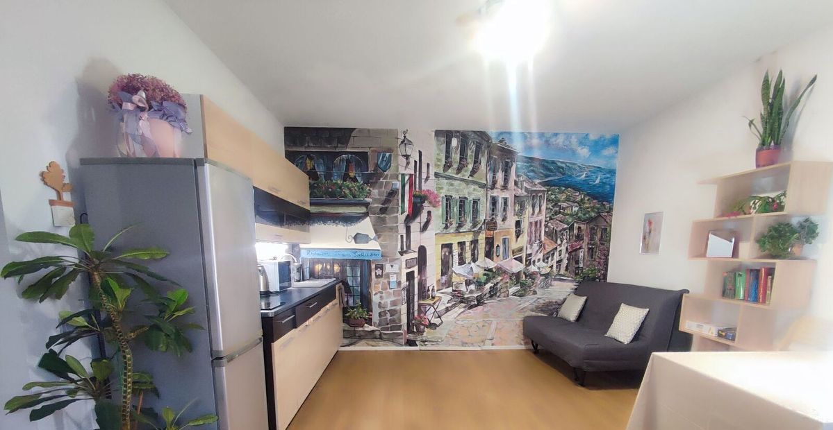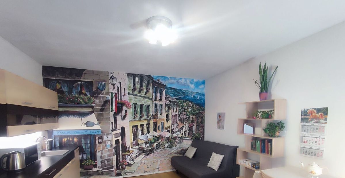 Сдается просторная студия с расписной стеной и теплыми полами в комнате и санузле. В комнате и коридоре постелен паркет и ламинат. Установлены новые: столешница, раковина, варочная панель, угольная вытяжка. Окна выходят в уютный зеленый дворик с видом на крыши. В доме всего 13 отдельных квартир. Отдельный вход в совмещенный санузел со стороны собственного коридора, а не из комнаты. Во всей квартире тёплые полы. Сделан качественный евроремонт с прочными стенами и дубовыми дверьми. В комнате большой раскладной диван ИКЕЯ. Есть раскладушка и надувной матрас. Предоставляем: сушилку,пылесос, гладильнаую доску, чайник,утюг,раскладушку,вентилятор. Студия рассчитана на одного или пары человек. В стоимость входят комплекты пастельного белья, полотенца,кухонная утварь, кастрюли, сковородки,постельное бельё, одеяла и подушки. Также есть возможность объёмные вещи оставить под замком на лестничной клетке.
