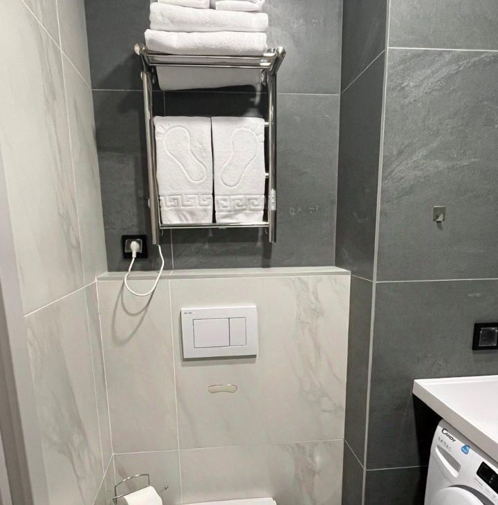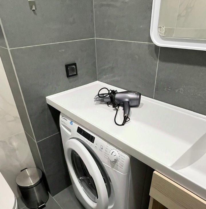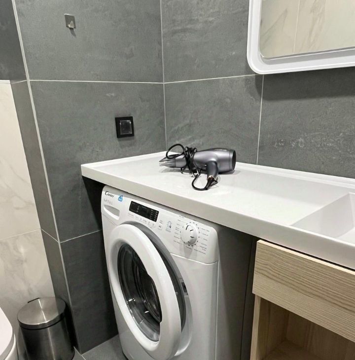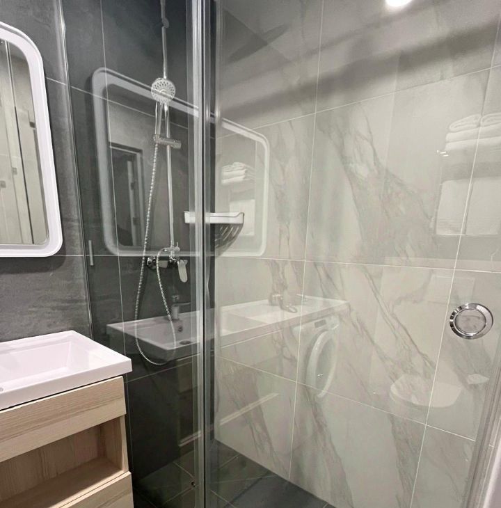 В квартире выполнен дизайнерский ремонт, а значит, вы сможете насладиться современным и стильным интерьером. Мебель в комнате создаёт атмосферу уюта и комфорта. В наличии вся необходимая техника: кондиционер, холодильник, телевизор и стиральная машина, поэтому можно сразу переехать и жить без забот. В ванной комнате установлена душевая кабина.