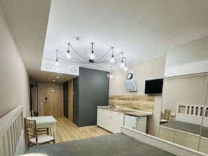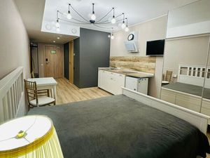 В квартире уже есть все самое необходимое: мебель, кухня с техникой, встроенная посудомоечная машина, кондиционер, стиральная машина и постельное белье. Двуспальная кровать при необходимости трансформируется в две отдельные кровати.