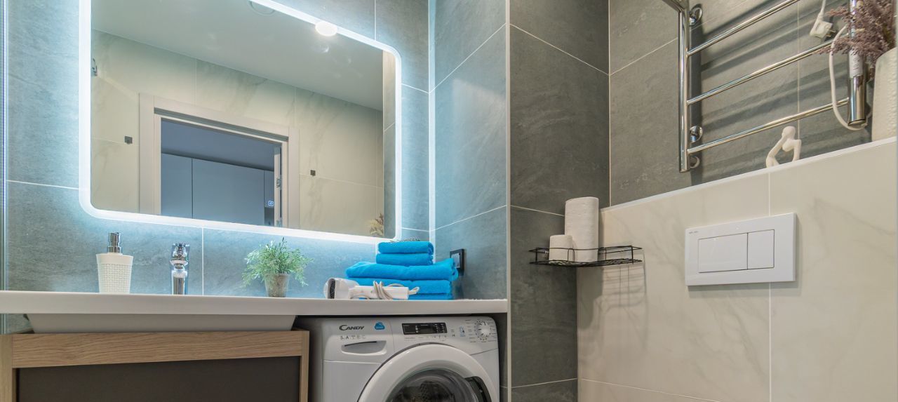 - Сан.узел (душевая кабина, туалет, стиральная машинка, сушилка, фен)