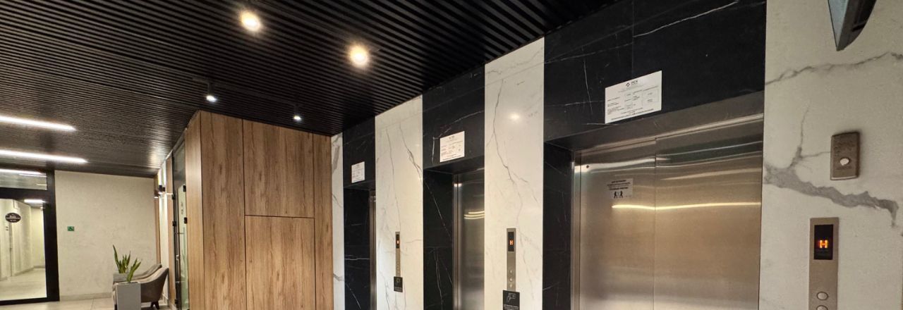 Имеются грузовые и пассажирские лифты, очень светло, комфортно, тихо и
