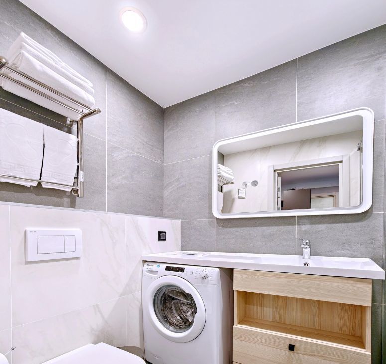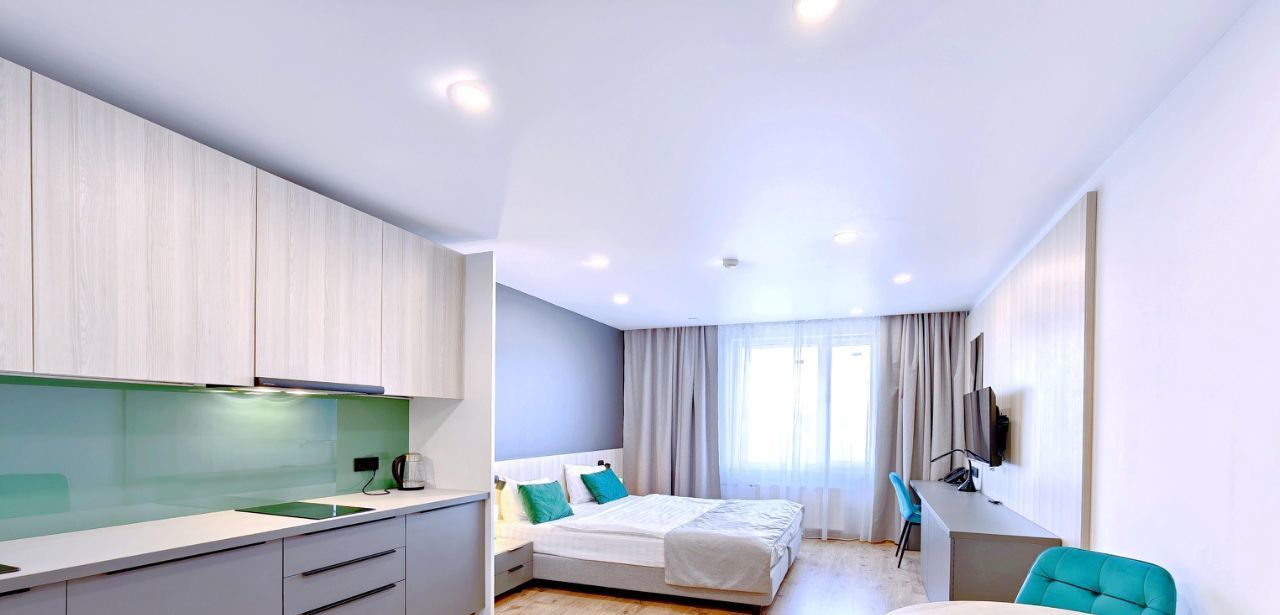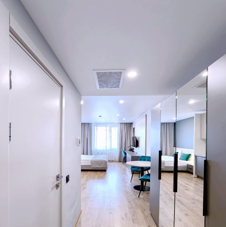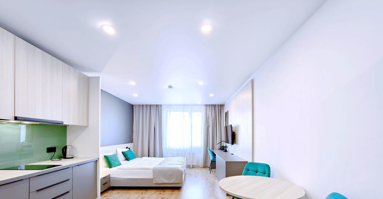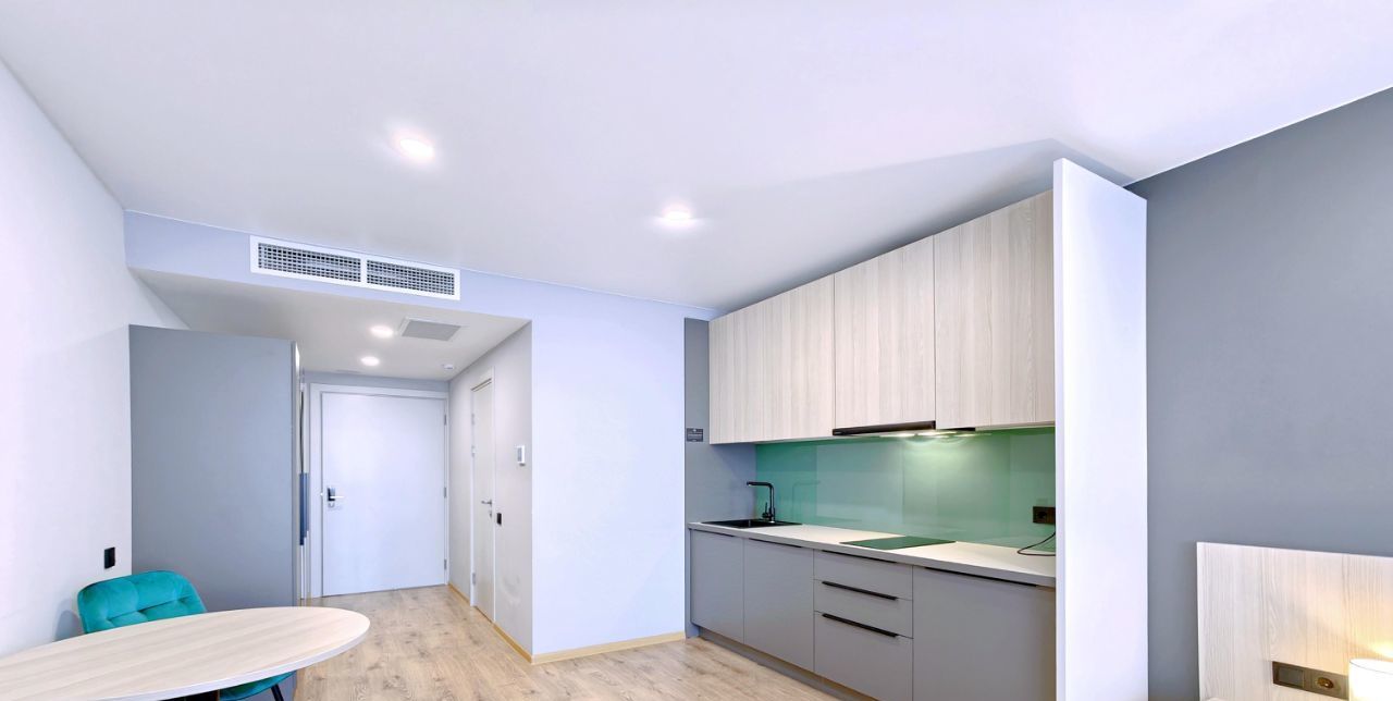 -Студия оснащена вместительной зоной хранения, стиральной машиной, системой кондиционирования, феном, гладильная доска и утюг также находятся в студии. - Скоростной Wi-fi и ТВ с функцией SMART.