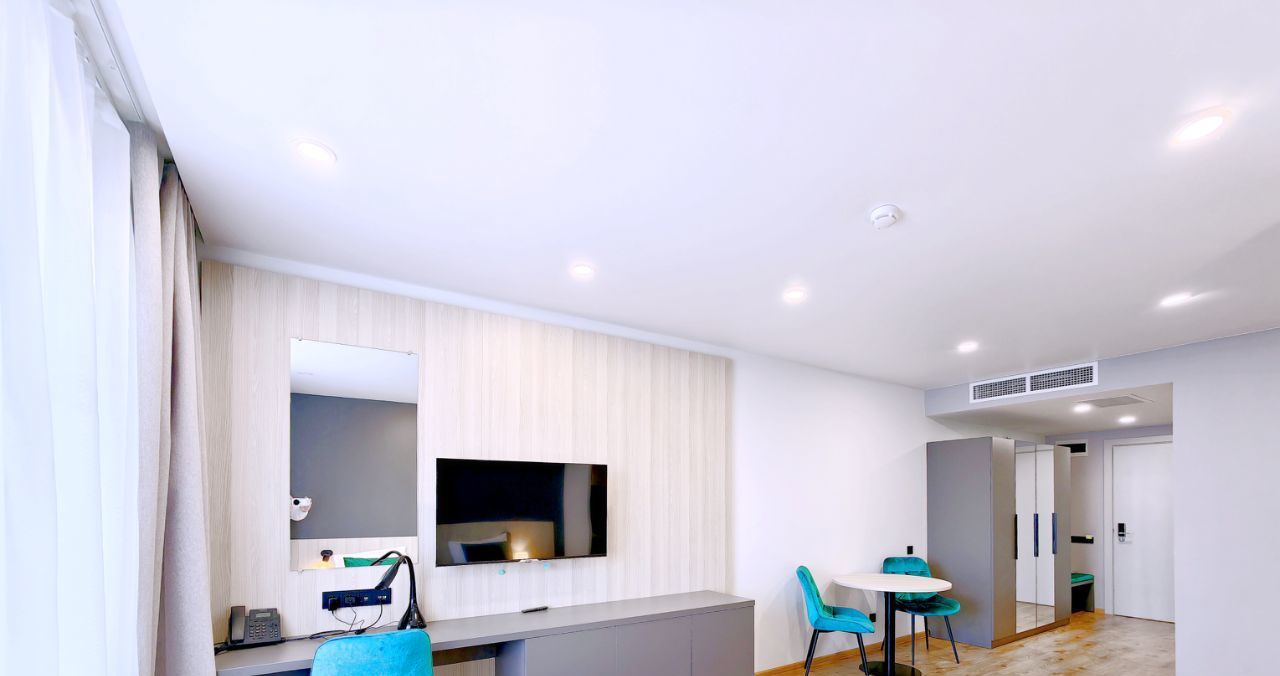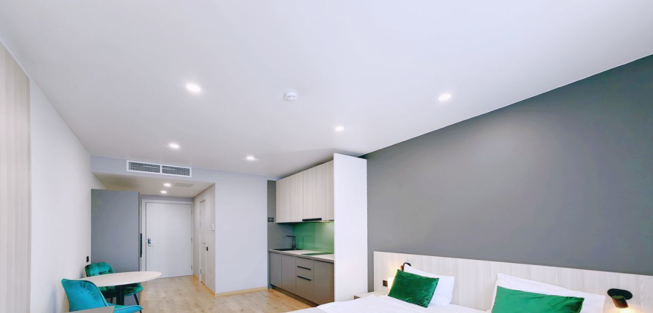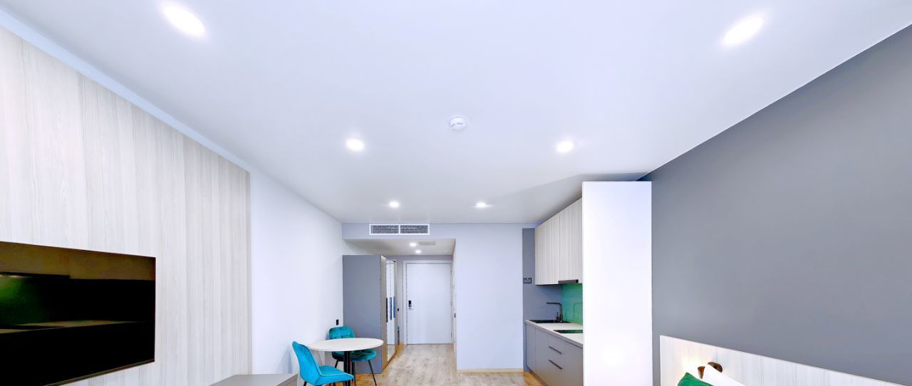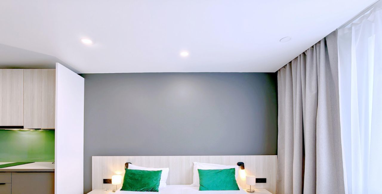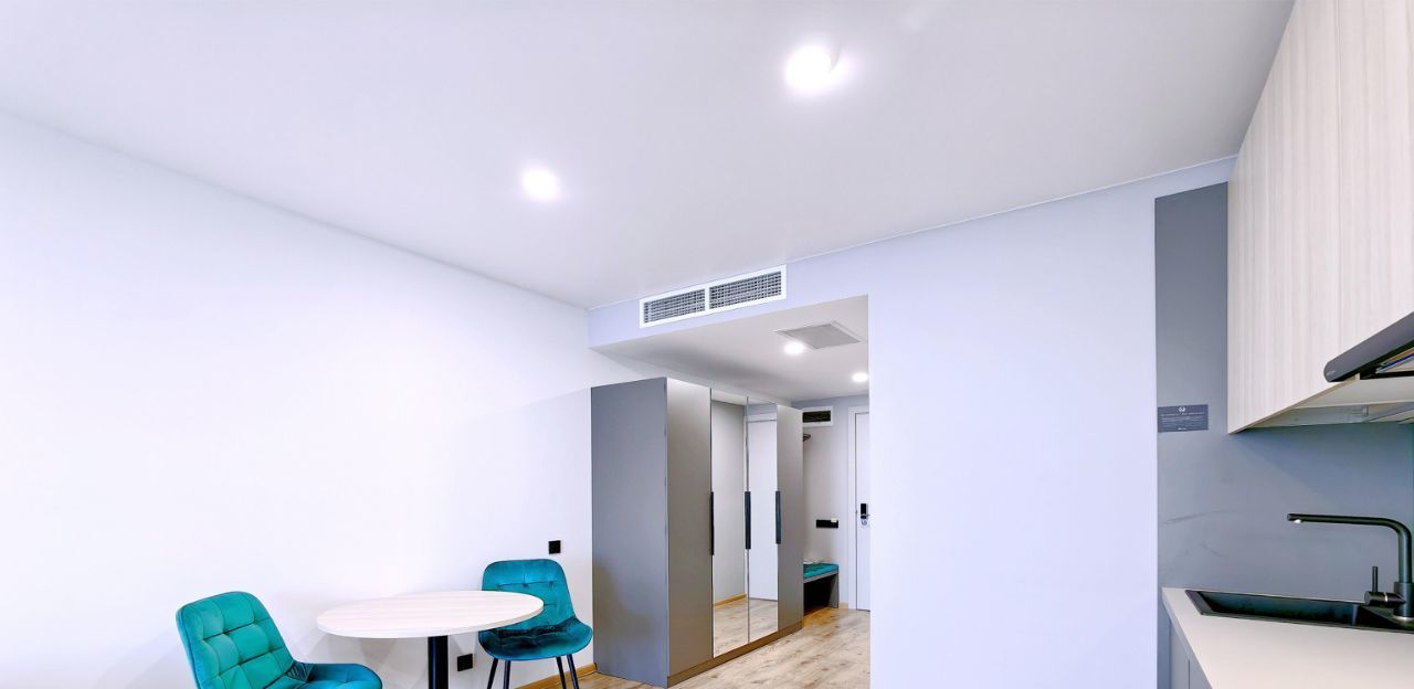 -Студия оснащена вместительной зоной хранения, стиральной машиной, системой кондиционирования, феном, гладильная доска и утюг также находятся в студии. - Скоростной Wi-fi и ТВ с функцией SMART.
