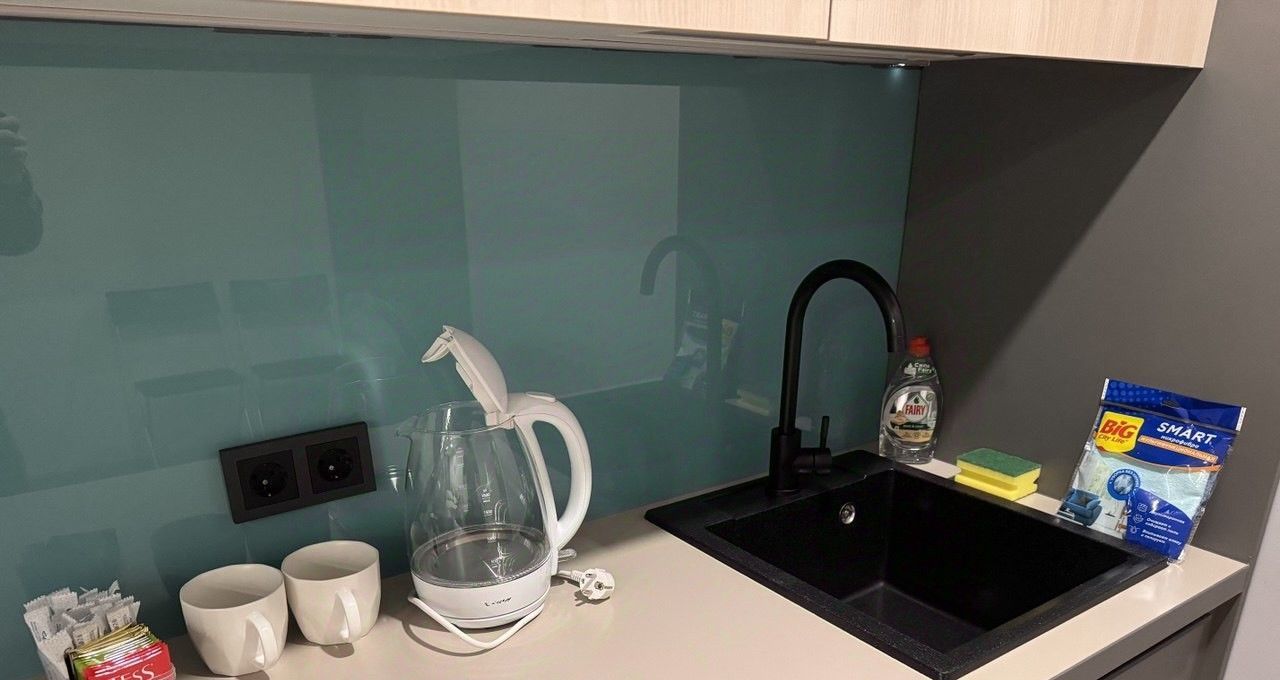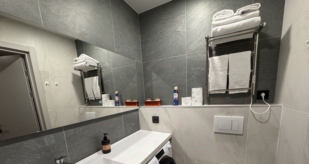 В квартире сделан качественный евроремонт, который подчеркивает современный стиль и комфорт. Пространство удачно организовано: есть вся необходимая мебель как на кухне, так и в жилой зоне, рабочее место за письменным столом. Для вашего удобства оборудована ванная комната с душевой кабиной. В квартире установлены кондиционер, холодильник, посудомоечная и стиральная машины, а также телевизор. Есть удобный раскладной диван.