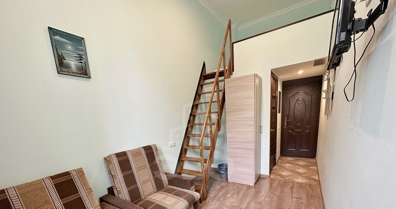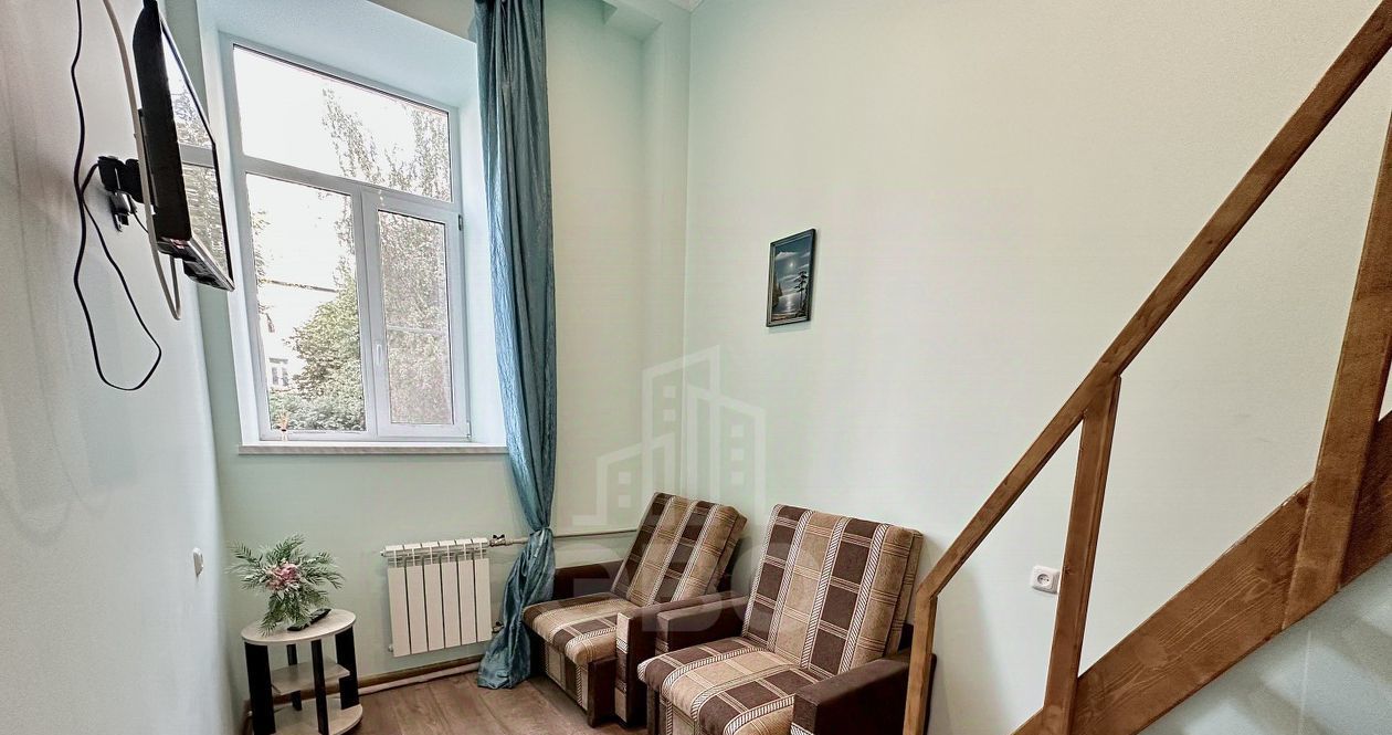 Арт. 52567775 Сдаётся уютная студия на длительный срок. В студии имеется спальная зона, свой санузел, телевизор, кресло, шкаф. Интернет проведен. Высокий первый этаж.