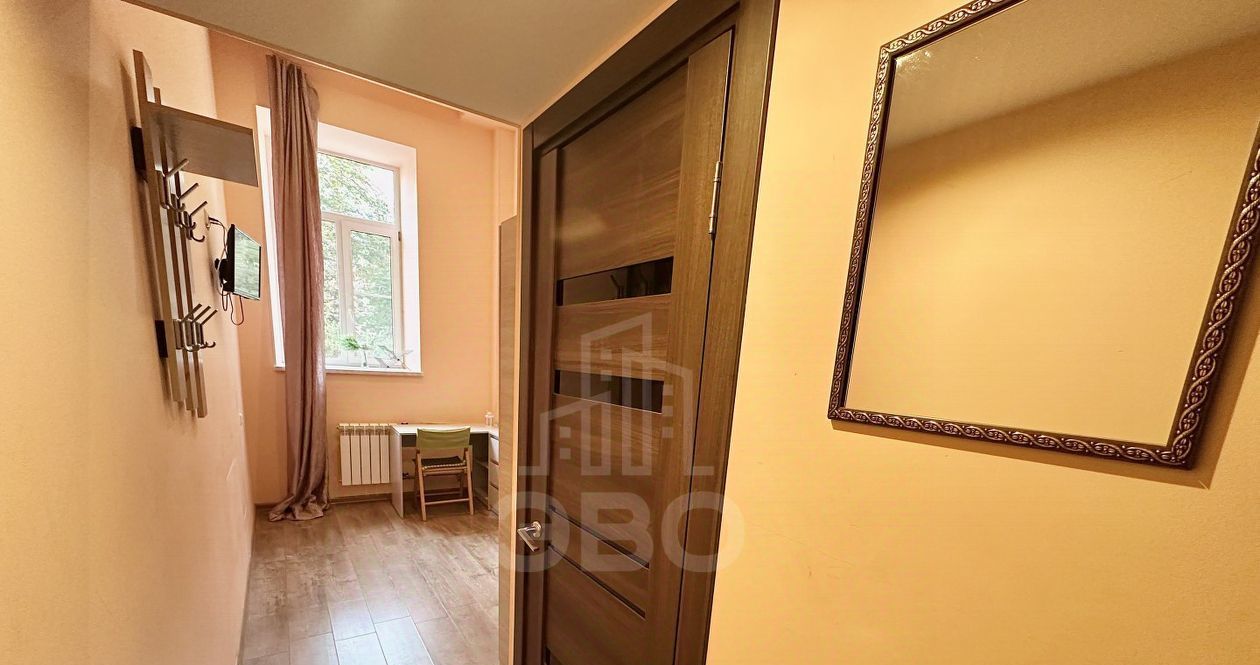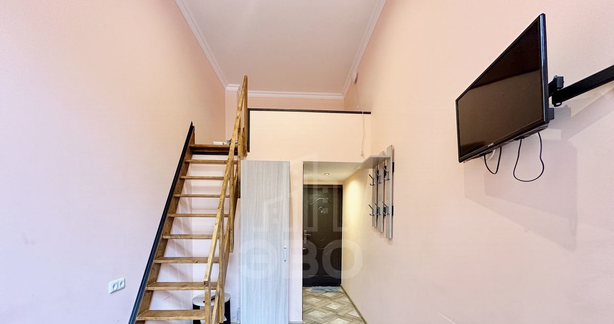 В студии имеется спальная зона, свой санузел, телевизор, кресло, шкаф. Интернет проведен. Высокий первый этаж.