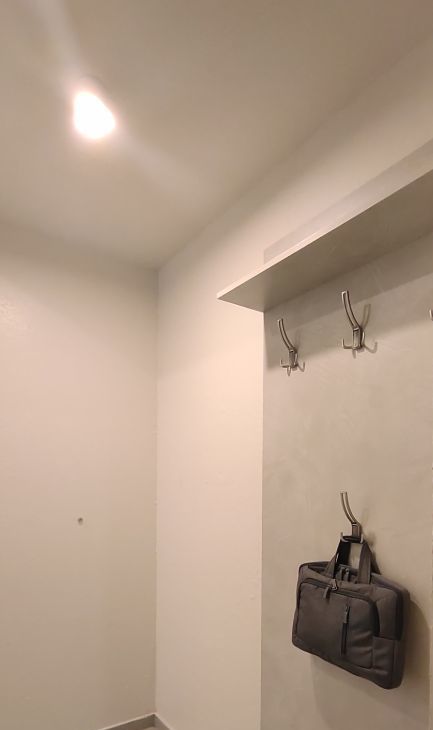 Места хранения под кроватью для огромных чемоданов и сумок, и большой шкаф на фото, плюс в прихожей крючки и полка под верхнюю одежду.
