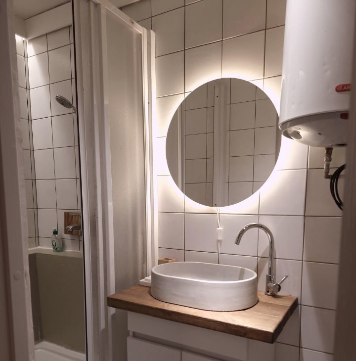 помещение на цокольном этаже жилого дома. новый ремонт как на фото. сделано фальш окно, на месте которого есть окно заделанное кирпичом, можно восстановить.