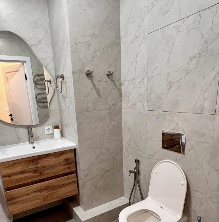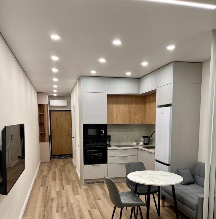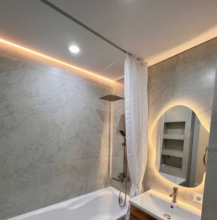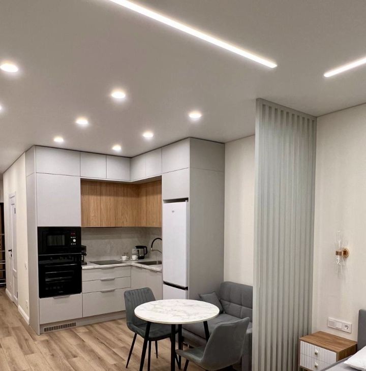 В квартире самое современное освещение (световые линии, парящий потолок, встроенные светильники), потолок с теневым профилем. На полу одно из самых удобных для проживаний покрытий кварцвинил, в ванной комнате керамогранит с подогревом. Система водоснабжения включает в себя водонагреватель (летом при отключении воды, можно спокойно принимать душ), фильтры грубой очистки и фильтр для питьевой воды.