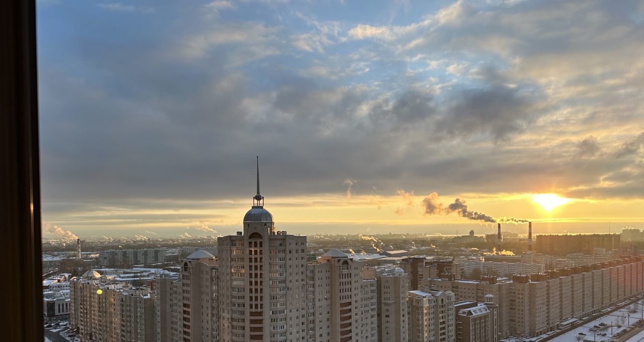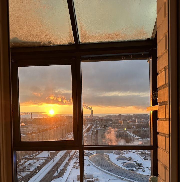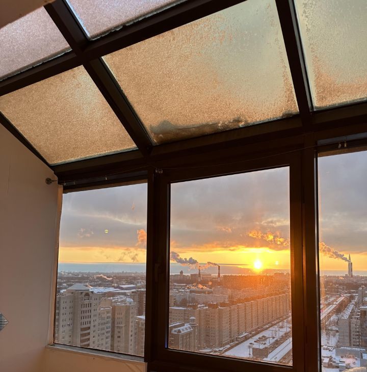Высокий этаж с открытой панорамой города, много света, красивые закаты, отсутствие эффекта окна в окна.