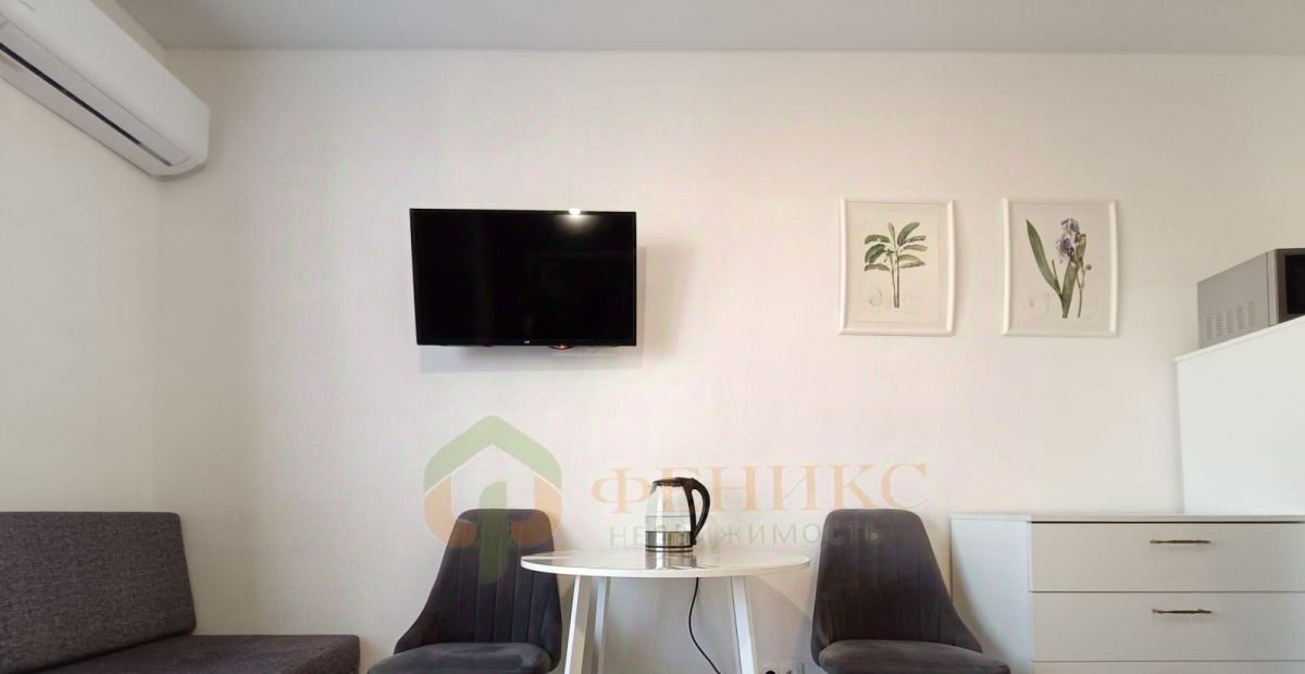 Студия полностью оснащена необходимой мебелью и техникой для комфортного проживания, вплоть до кондиционера.
