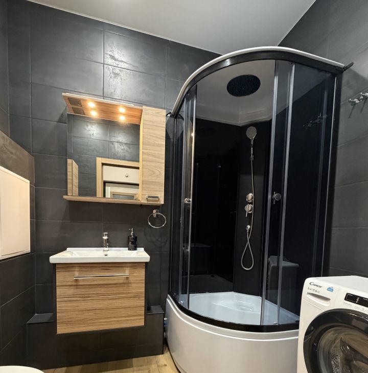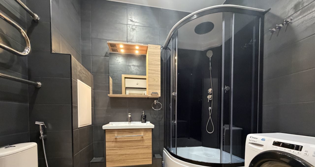 Выполнен качественный ремонт. Квартира полностью укомплектована мебелью и бытовой техникой (кондиционер, холодильник, стиральная машина, плита, духовой шкаф, вытяжка, микроволновая печь, чайник, утюг). Новый диван (ширина спального места 140 см. ) Два вместительных шкафа для одежды. Просторный сан. узел.