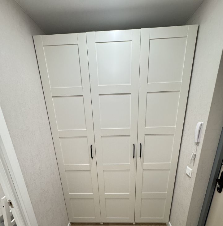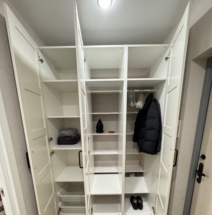 Гардеробная достаточно вместимая и функциональная.