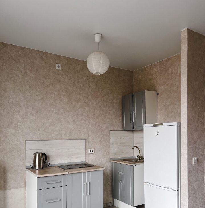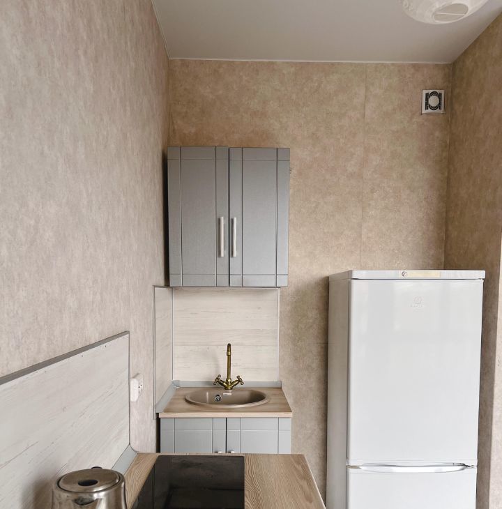 Вся необходимая техника: варочная поверхность, холодильник, чайник, стиральная машина.