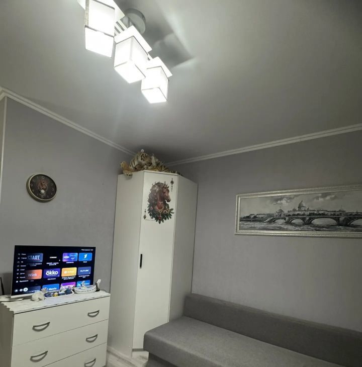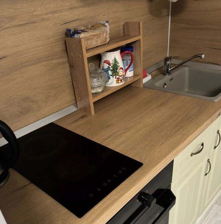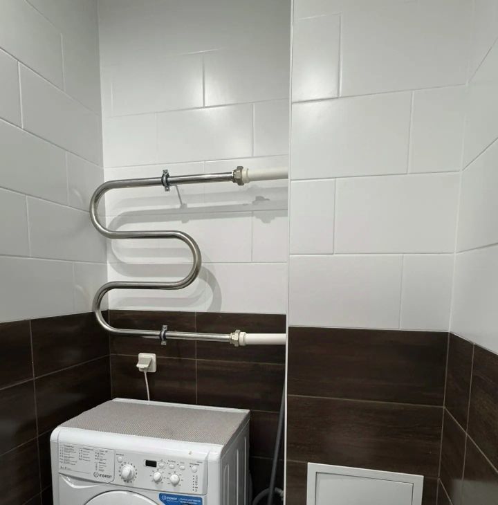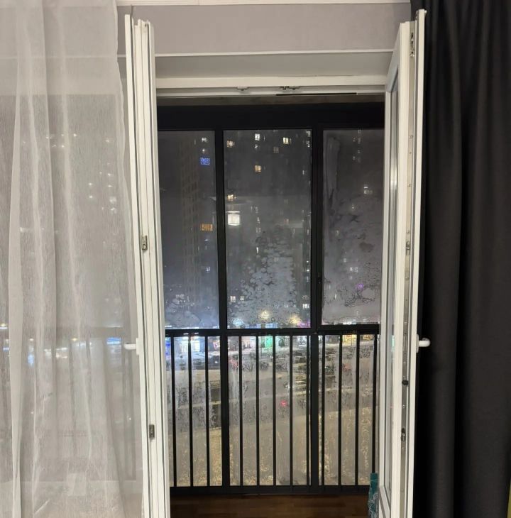 Кухня оборудована всей необходимой техникой, включая холодильник. В совмещенном санузле установлена стиральная машина. Из окон открывается вид на город, а также есть застекленная лоджия 6 метров