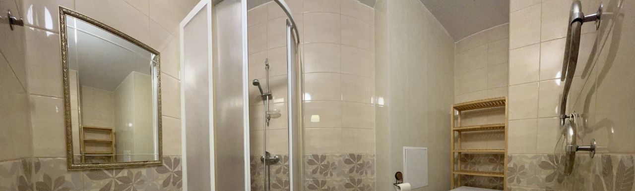 В квартире выполнен современный евроремонт. Уютная обстановка создается благодаря мебели на кухне и в комнате. Просторная жилая площадь 18,2 кв. м позволяет комфортно разместиться и расслабиться после насыщенного дня. На кухне площадью 3,3 кв. м вы найдете всю необходимую технику: холодильник, посудомоечную машину, стиральную машину и телевизор. Ванная комната оборудована душевой кабиной, что обеспечивает комфорт и удобство.