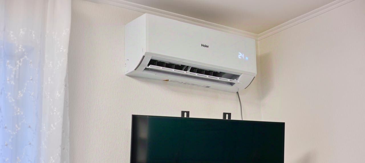 Квартира полностью меблирована и готова к проживанию. В комнате и на кухне есть вся необходимая мебель, а также современная техника: холодильник, телевизор, кондиционер, посудомоечная и стиральная машины. Также в квартире есть интернет и телефон, что делает её удобной для комфортного проживания и удалённой работы.