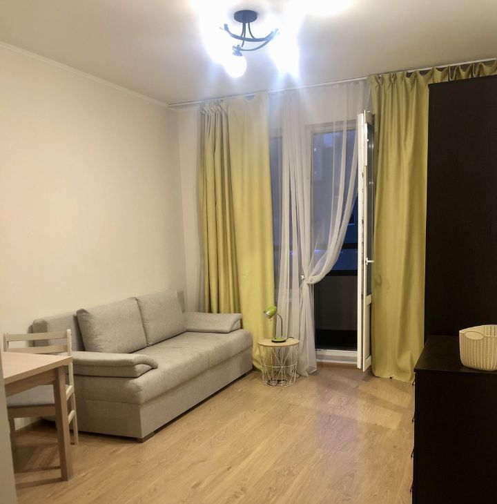 Сдаётся квартира-студия 25,1 м.кв. на 5 этаже 23 этажного современного дома комфорт-класса Чистое небо от компании Setl. Безопасный вход в парадную со двора, 3 лифта, система видеонаблюдения.