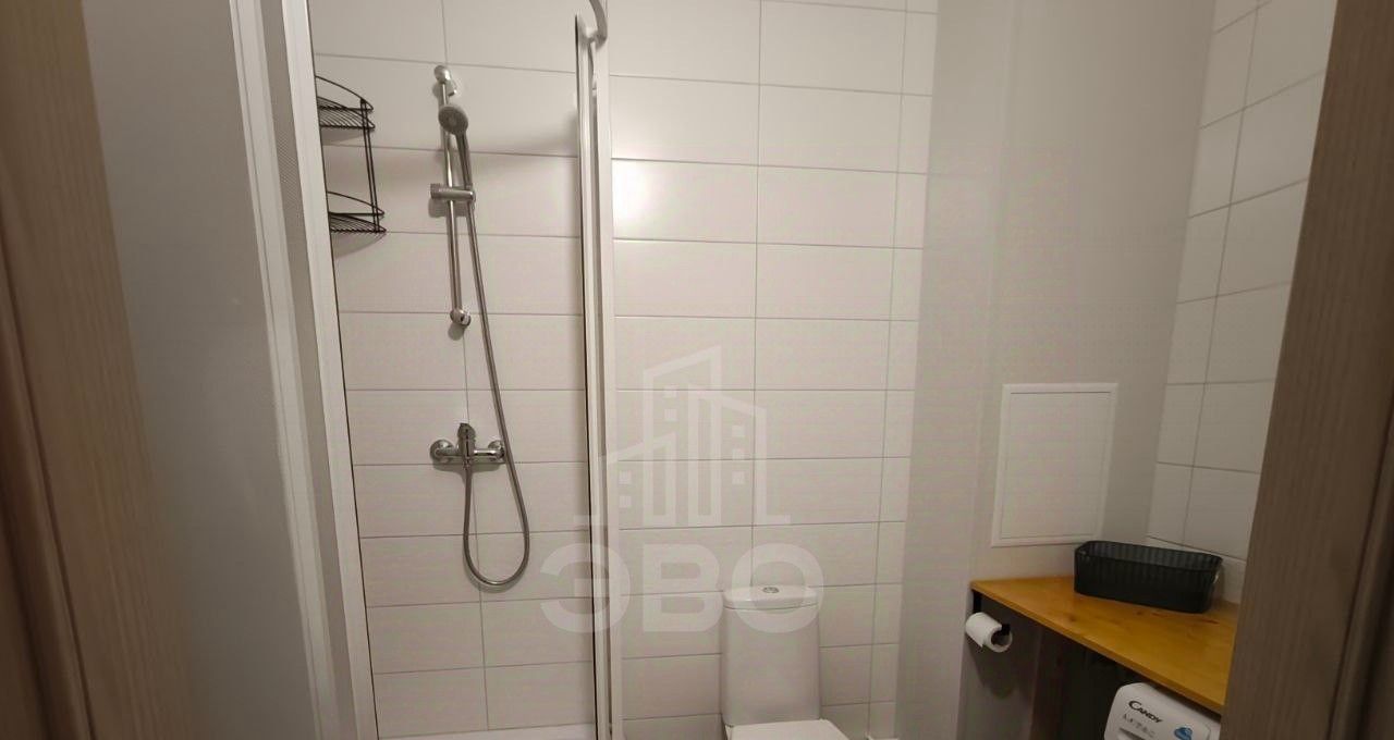 В ванной комнате - аккуратная душевая кабина. Просторная лоджия станет отличным местом для утреннего кофе или вечернего отдыха с видом на спокойный двор.