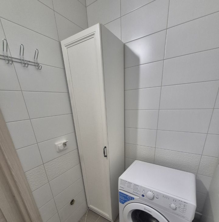 В квартре имеется вся мебель для проживания (кухонный гарнитур,диван раскладывающийся,стол,стулья,стиральная машина,шкаф для белья).