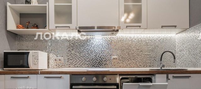 К лоджии прилагается стильный, свежий ремонт со всей современной техникой, даже посудомойка есть (в студиях очень часто ими пренебрегают из-за недостатка места). В целом очевидно, что ремонт и обстановка делались для себя, а не для сдачи в аренду, это ощущается сразу и в обязательном порядке прибавляет положительных эмоций от проживания.