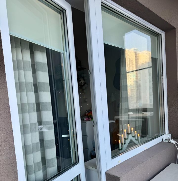 Большое окно и выход на балкон. Вид на зелёный тихий двор — много света и нет эффекта окна в окна