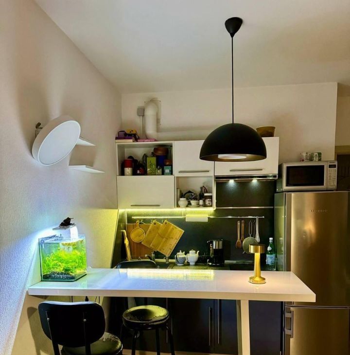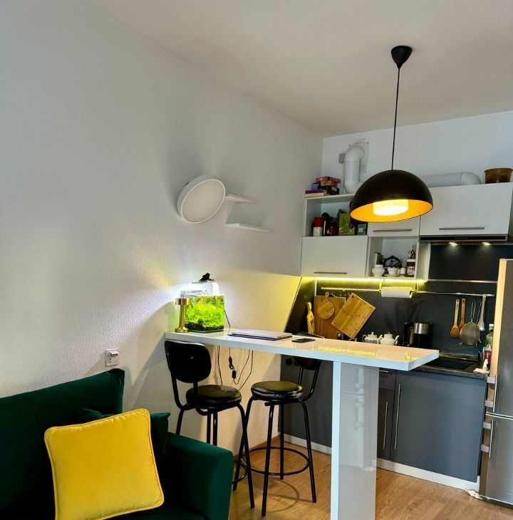 Удобная планировка позволяет легко зонировать пространство на кухню-гостиную и отдельную спальную зону