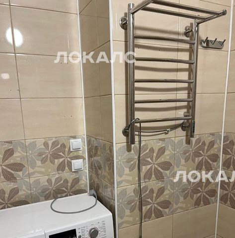 В санузле стиральная машина Bosch и электрический полотенцесушитель .