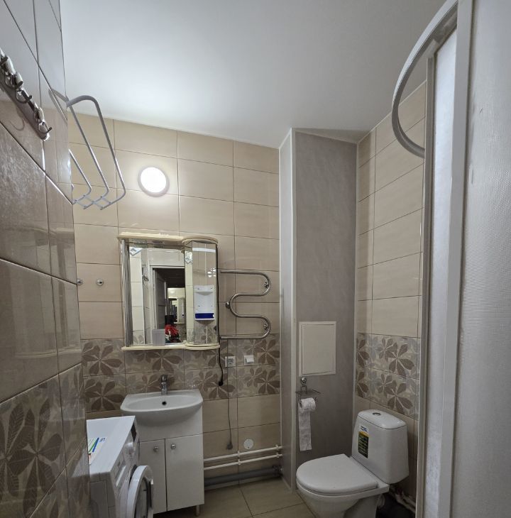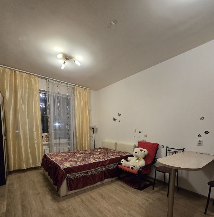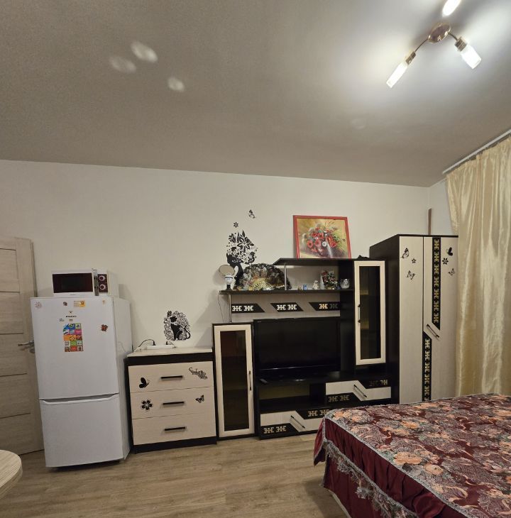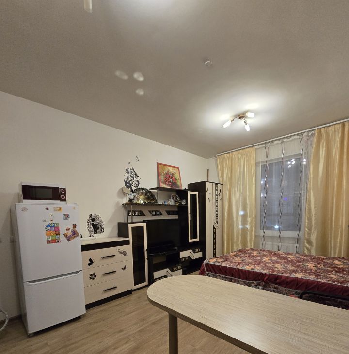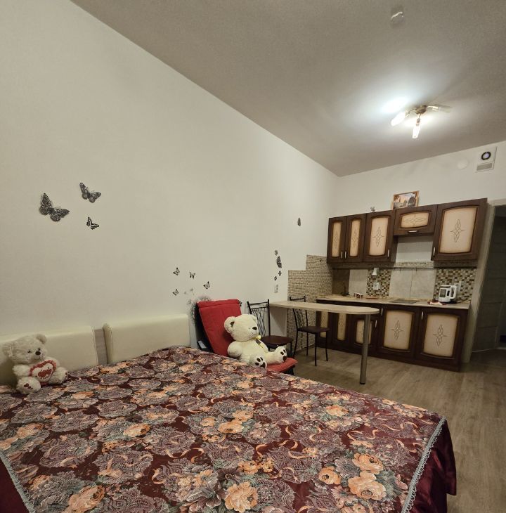 Студия в новом современном кирпич-монолит. доме.Окно -застекленнвя лоджия во двор без машин. Восточная сторона. В квартире: стиралка , холодильник,свч, вар.панель, телевизор, вай-фай.