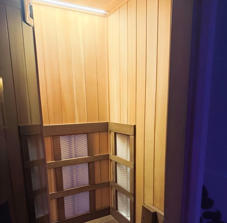 Главая особенность квартиры — электрическая сауна, в которой можно согреться и расслабиться после долгого дня.