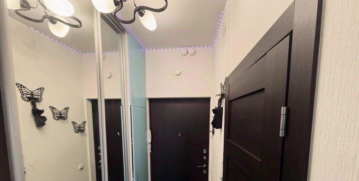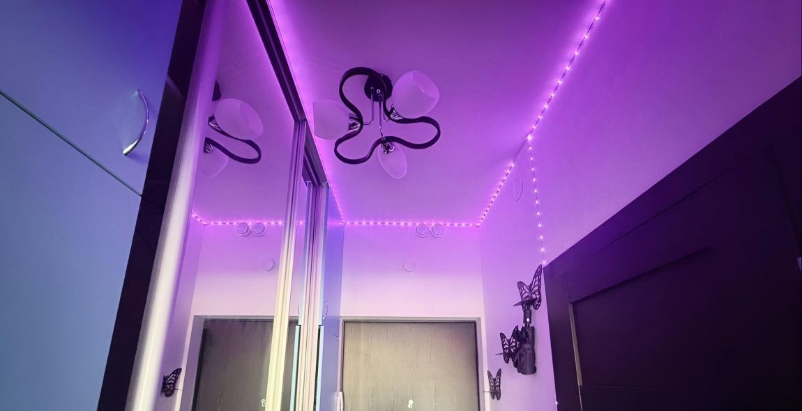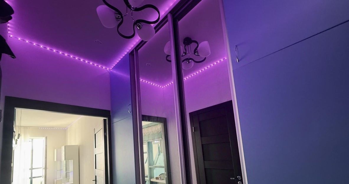 Уютная двухуровневая квартира с современным интерьером и атмосферной подсветкой. По всей квартире установлены светодиодные ленты, включая подсветку шкафов и ванной, что создаёт очень приятное вечернее освещение.