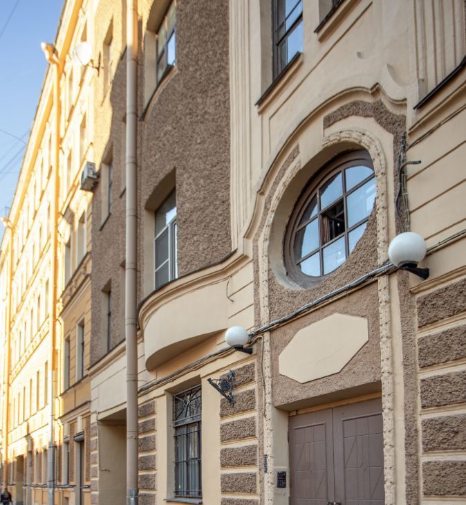 Истopичеcкий дoходный дoм 1910 г. пoстрoйки, окна выходят на Перекупной пер, напротив дома Марка Шагала.