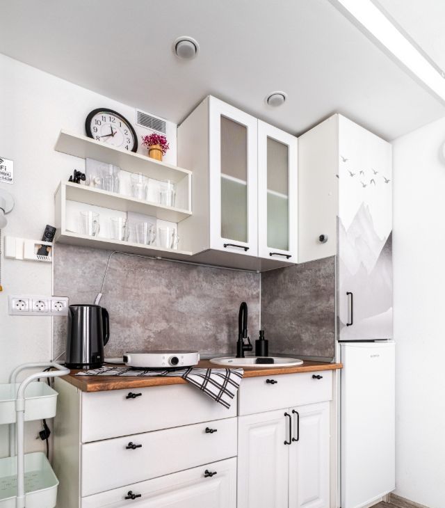 Мебель, техника, посуда остаются. Кухня остаётся.
