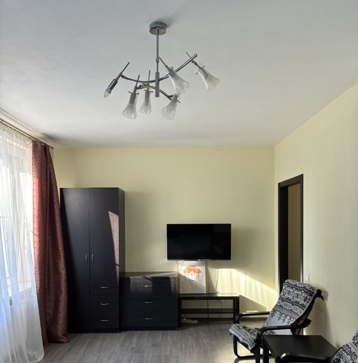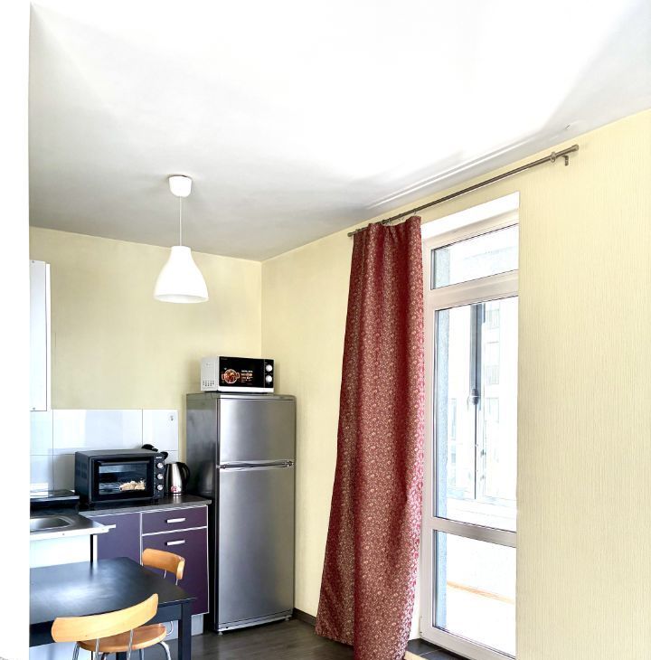 В квартире сделан качественный евроремонт. Здесь есть вся необходимая мебель как на кухне, так и в комнате, а также современная техника: холодильник, телевизор и стиральная машина. Ванная комната оборудована ванной, что позволяет комфортно расслабиться после трудового дня. Окна выходят как на улицу, так и во двор, поэтому квартира светлая и тихая.