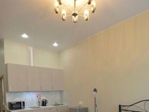Сдается уютная студия в современном доме 2015 года постройки. Квартира расположена на первом этаже 10-этажного здания. Общая площадь составляет 23 кв. м, из которых жилая площадь — 13 кв. м, а кухня занимает 5 кв. м. Высота потолков — 2.75 метра, что создает ощущение пространства.