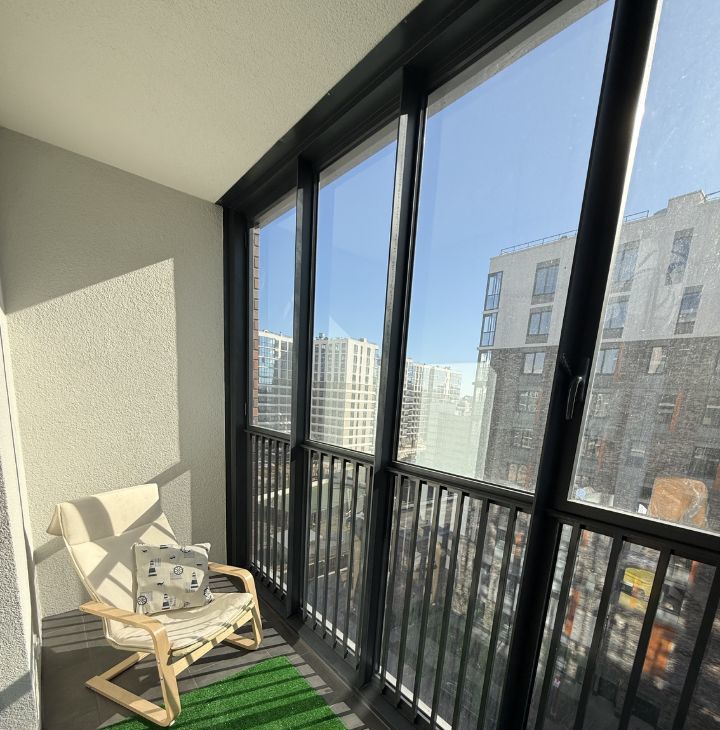 • Площадь: 24,5 кв.м + просторная застекленная лоджия (4 кв.м), оборудованная под уютную зону отдыха с креслом.