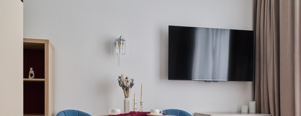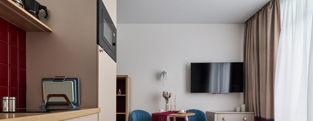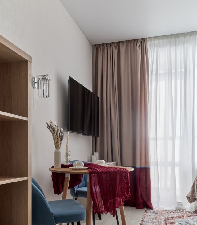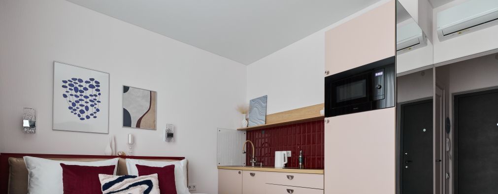 Яркая, уютная студия с продуманной планировкой и современным интерьером.