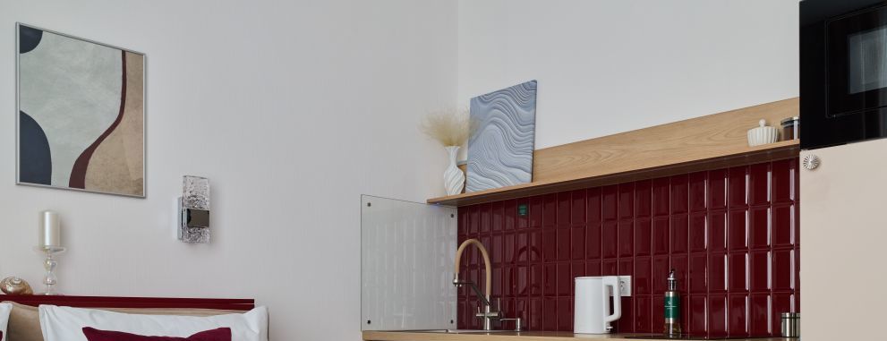 Дизaйнеpская, современная квартира для двоих Bordo с бесплатной парковкой за шлагбаумом во дворе!