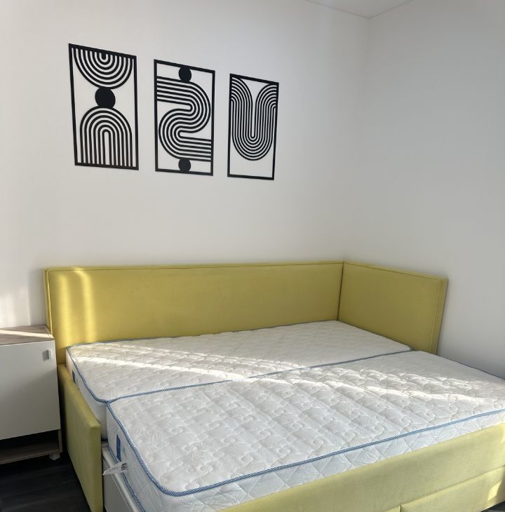 Полноценное спальное место, при необходимости раскладывается в двуспальную кровать размера king size. Ортопедический матрас.