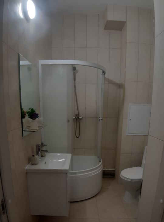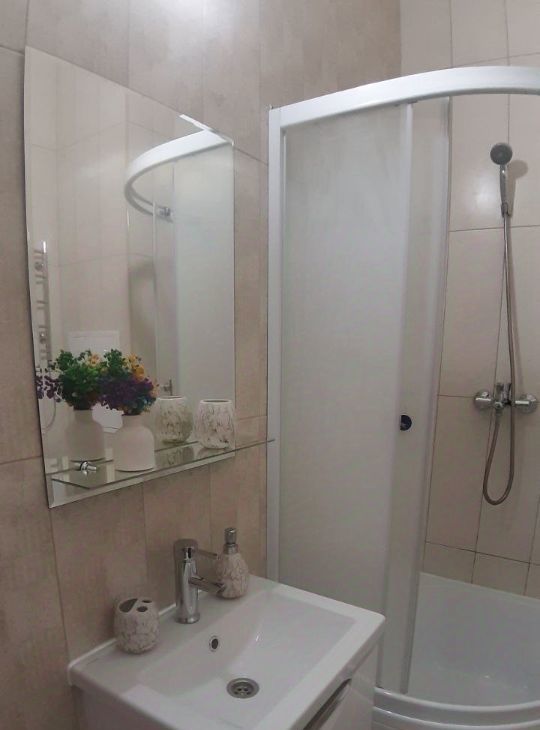Жильё оснащено всей необходимой техникой: есть холодильник и стиральная машина. На кухне имеется мебель, а в ванной комнате установлена душевая кабина. Окна выходят на улицу, что обеспечивает хорошую освещенность. Для вашего комфорта в доме проведён интернет.