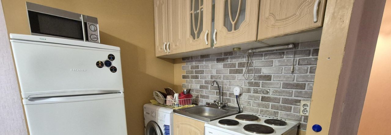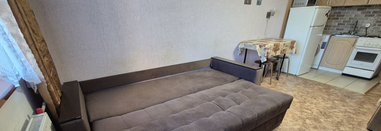 Общая площадь 28 кв.м., кухня - гостиная 17 кв.м., ванная 4 кв.м., санузел совмещенный, стеклопакеты, вся бытовая техника: холодильник, стиральная машина, микроволновая печь. Мебель: диван двуспальный выкатной (НОВЫЙ), кресло-кровать, мебельная стенка, комод, кухня 4 секции, стол. Дверь железная. Этаж 2-й, 18-ти этажного монолитного дома 2012 года постройки.
